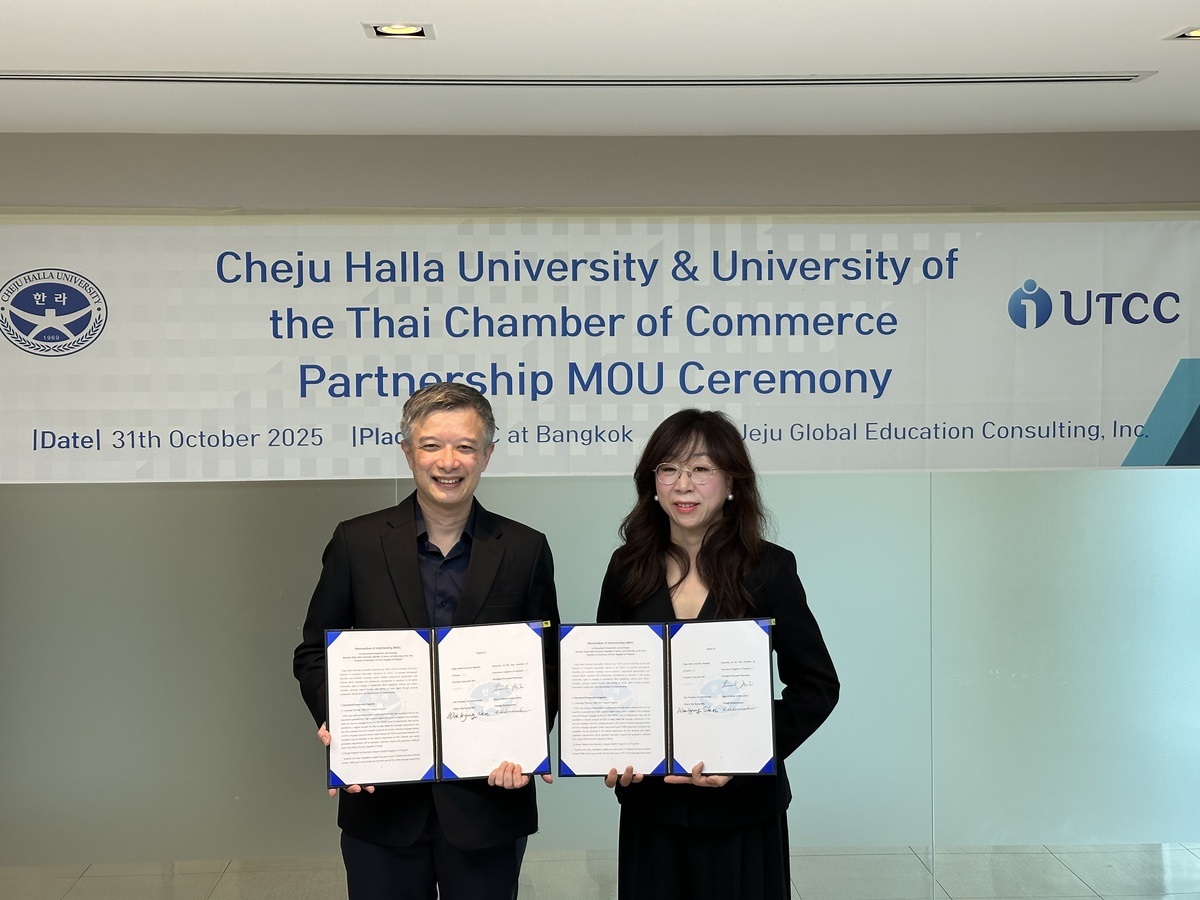 ❏제주한라대학교(총장 김성훈)는 태국 반솜뎃짜우프라야 라차팟대학교(Bansomdej Chaopraya Rajabhat University, 이하 BSRU)와 태국 상공회의소대학교(University of the Thai Chamber of Commerce, 이하 UTCC)와의 업무협약(MOU)을 체결하고, 현지에서 유학설명회를 개최했다.